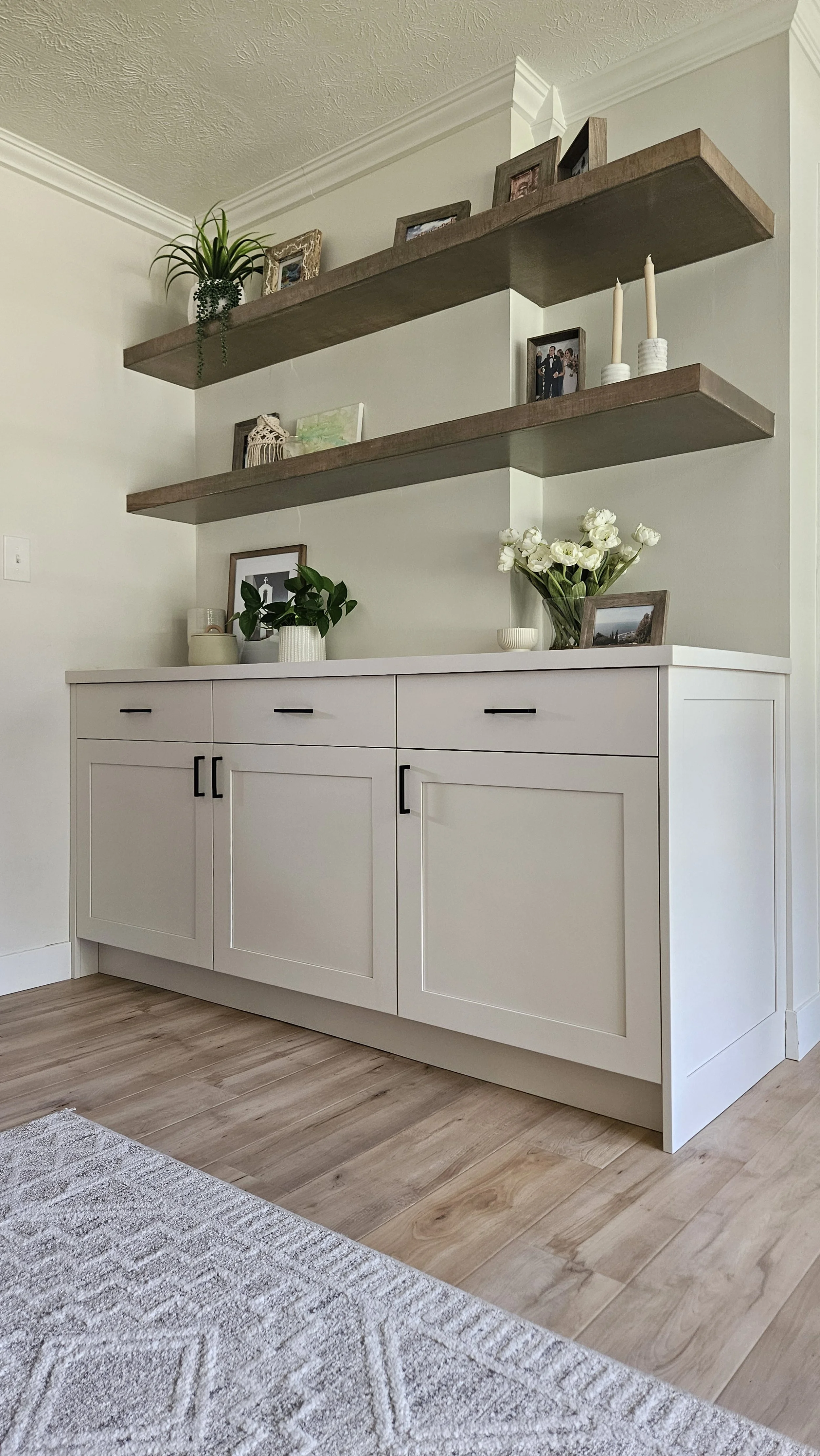 Off-the-shelf cabinets come with big drawbacks. Limited standard sizes, outdated styles and colors, and flimsy construction to name a few.